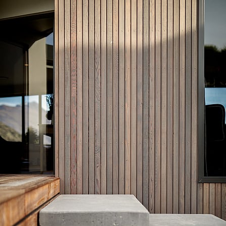 TRANSFORMED FROM TOP TO TOE, THIS 1960S FRANKTON BACH IS NOW UNRECOGNISABLE // New vertical cedar, & plaster compliments a handsome deck, & floating concrete steps lead to an impactful entranceway.